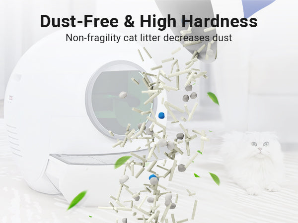 Low dust and Low tracking: Our low-dust clumping kitty litter ensures that your litter box won’t be covered in residue and neither will your house. High hardness and non-fragility cat litter decreases dust in the air to maintain a clean air environment.