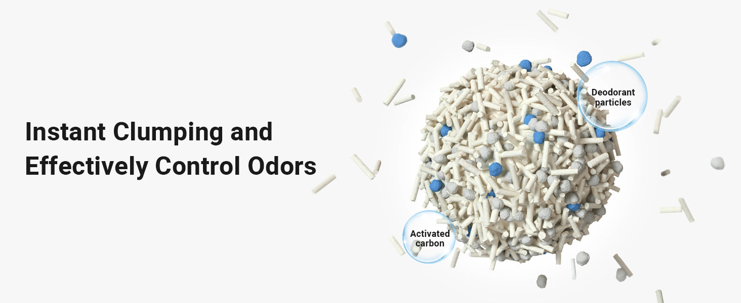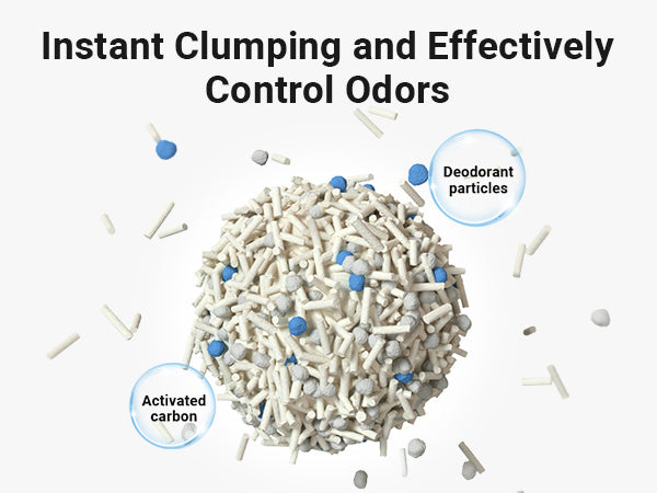 Scientific ingredient ratio: 5% deodorizing particles, 35% bentonite, 60% tofu cat litter. Ideal diameter of 1.5MM: Comfortable feet, cats like it more.