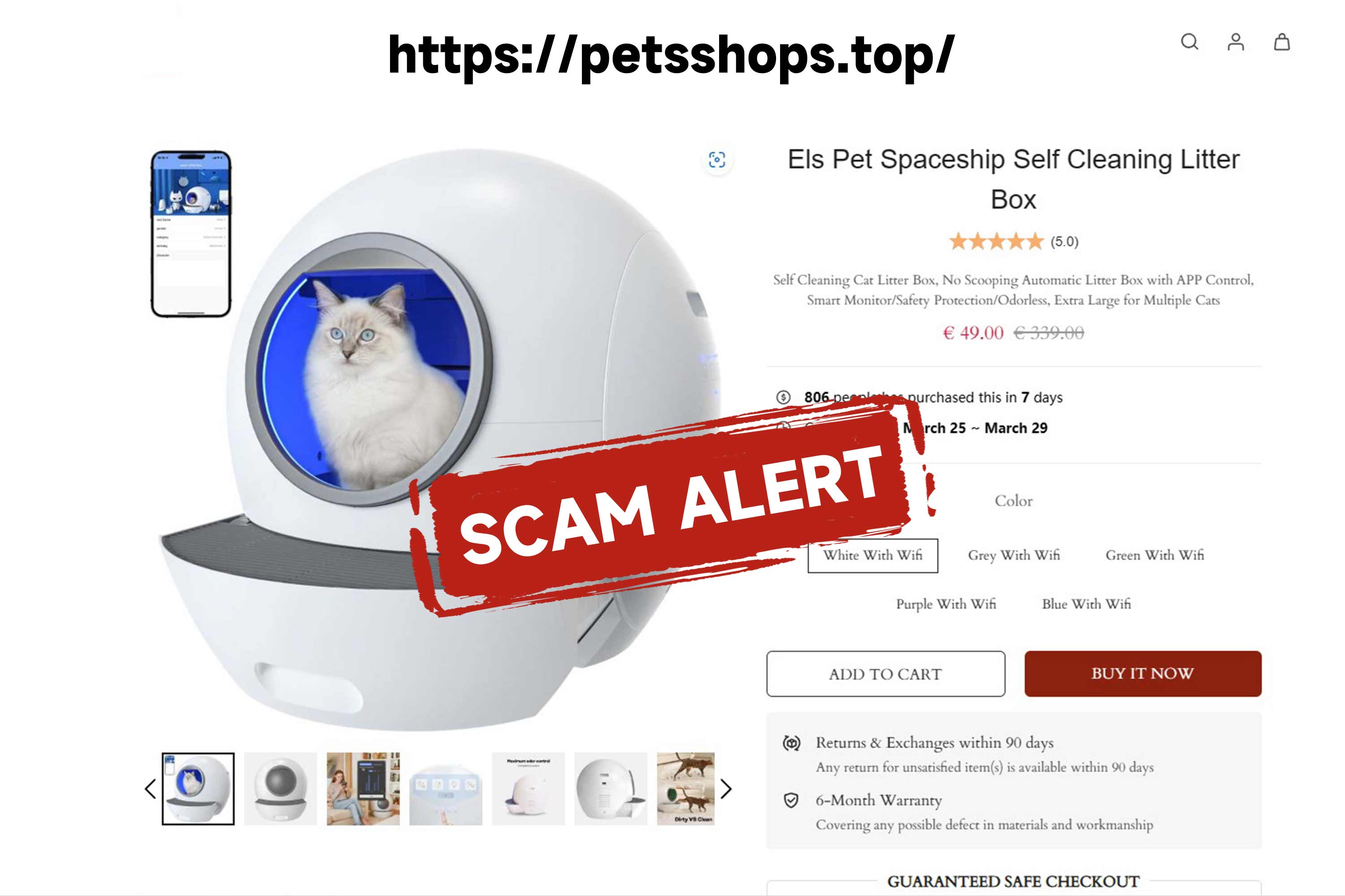Vorsicht vor unrealistischen Preisen: Betrügerische Websites bieten unsere hochwertigen selbstreinigenden Katzentoiletten oft zu unglaublich niedrigen Preisen an, beispielsweise für 39,33 € oder 29,99 $. Originalprodukte von Els Pet werden zu angemessenen Marktpreisen verkauft. Wenn Sie auf Preise stoßen, die deutlich unter dem Standardpreis liegen, seien Sie vorsichtig, da es sich dabei um Betrug handeln könnte.